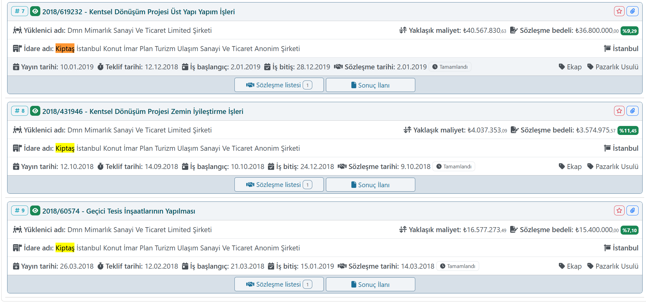 Söz konusu tartışmaların ardından KİPTAŞ’ın AKP’li yıllardaki ihaleleri merak konusu oldu. İşte AKP’li yıllarda Kiptaş’ın çıktığı ihalelerden bazıları.
