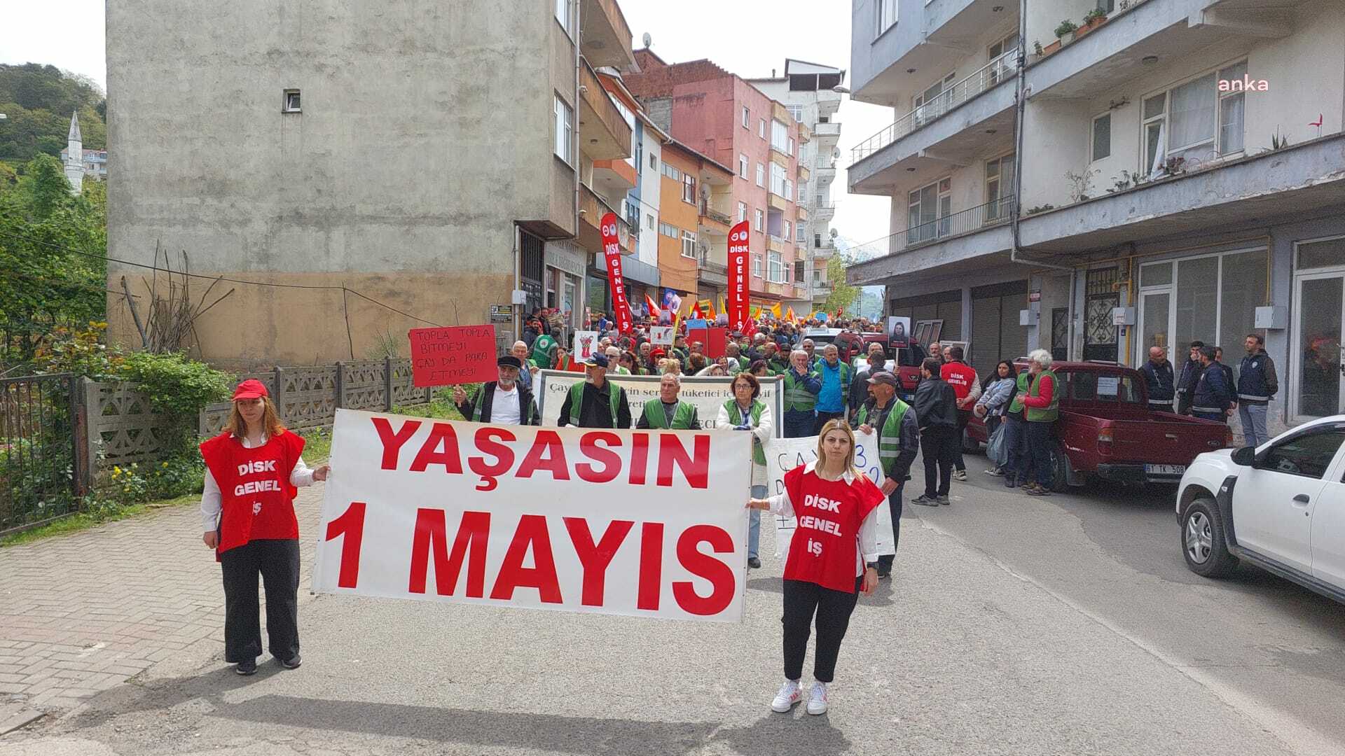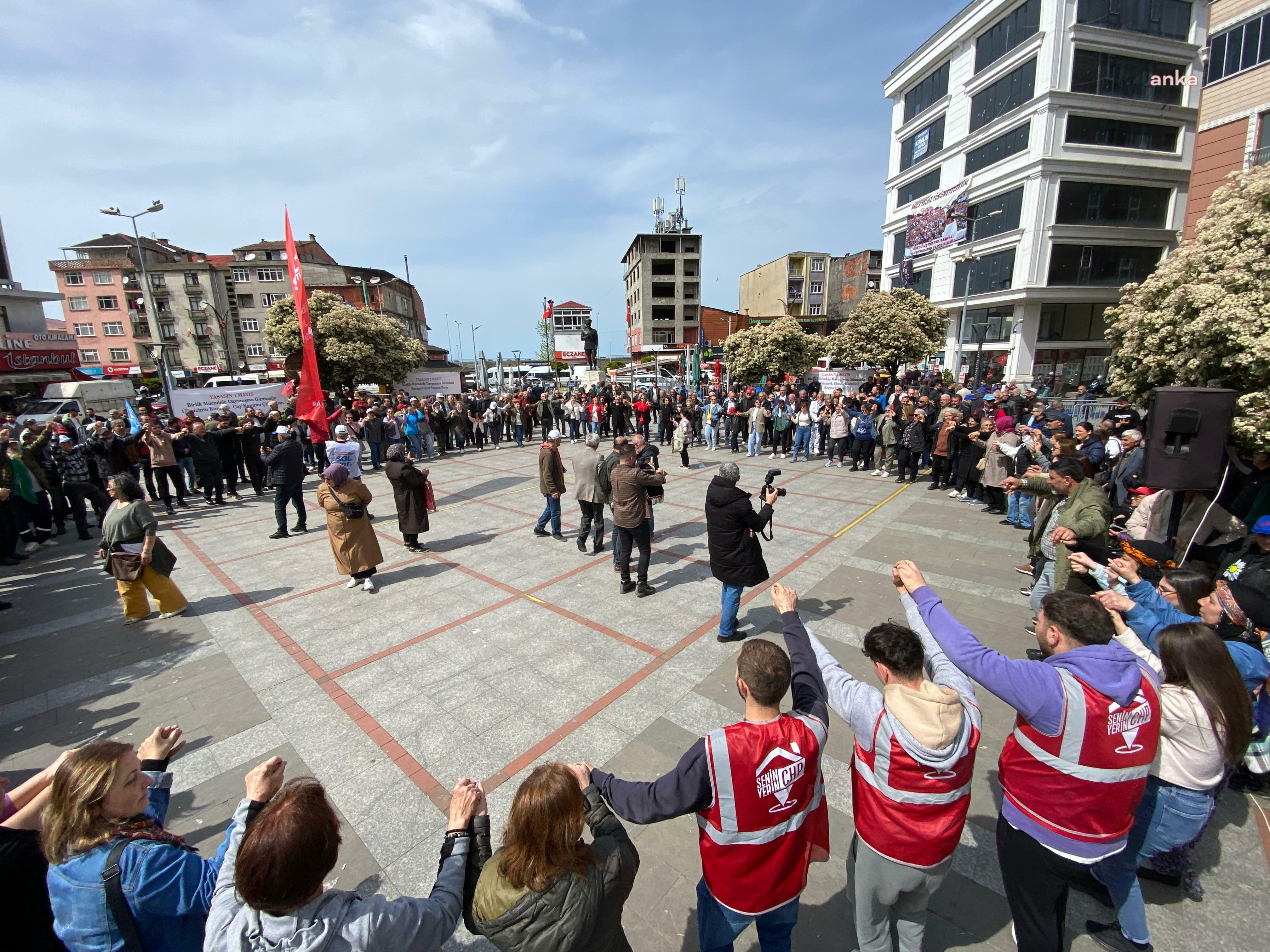 Rize’de emekçiler, 1 Mayıs İşçi ve Emekçiler Bayramı dolayısıyla, Pazar ilçe stadyumunun önünde toplanarak Demokrasi Meydanı’na yürüdü. CHP, SOL Parti, KESK’e bağlı sendikalar, Birleşik kamu iş‘e bağlı sendikaların yanı sıra, Tüm Emekliler sendikası, Halkevleri, İnan Hakları Derneği (İHD) Rize Temsilciliği, Çağdaş Gazeteciler Derneği (ÇGD) Çay üreticileri ve Çaykur işçilerinin katıldığı kutlamada konuşan Tüm Emekliler Sendikası Başkanı Yaşar Karahan, “İçinde bulunduğumuz düzenin bize vaat ettiği daha fazla yoksulluk, daha fazla sefalet daha fazla baskıdır. Pazar meydanında bir kez daha sesleniyoruz, çünkü geçinemiyoruz, artık yeter diyoruz. Şimdi hep beraber alanlardayız mücadeleyi dayanışmayı büyütmek için alanlardayız, bu alanları daha da büyüteceğimizden kimsenin şüphesi olmasın. Aldığımız ücretlerle insanların insan gibi yaşayacağına acaba kaçımız inanıyoruz? İnanmıyoruz çünkü bizler yaşıyoruz” dedi