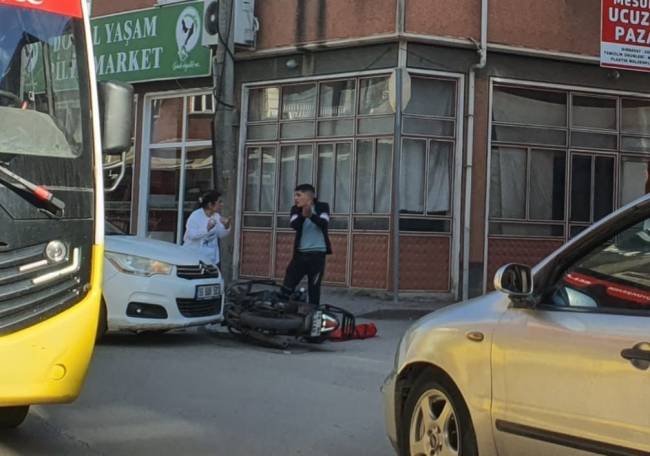 Saat 18.30 sıralarında Mesudiye Mahallesi İnegöl Caddesi’nde meydana gelen kazada, cadde üzerinde seyretmekte olan 28 yaşındaki Şerif E. kontrolündeki 16 MC 3148 plakalı motosiklet, karşı yönden gelip ara sokağa dönmek isteyen Zeynep S. yönetimindeki 16 BAH 503 plakalı otomobille kafa kafaya çarpıştı.