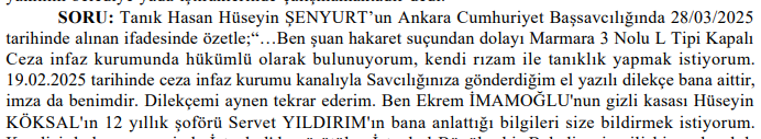 “Hasan Hüseyin ŞENYURT isimli şahsın 50’ye yakın dosyası vardır, hasta bir insandır. İstanbul Cumhuriyet Başsavcılığı tarafından bu iddialar ile ilgili soruşturma yürütüldü ve hakkımda Takipsizlik kararı verildi. Benim HTS kayıtlarım ve bulunduğum yerler bellidir. Kurultay öncesinde ve kurultay sürecinde nerede olduğum bellidir. Ben Ankara ilindeki kurultaya da gitmedim. Laleli’deki döviz bürosuna da gitmedim. Hüseyin KÖKSAL’ın yanında çalışırken sosyal medyadan ve mahalledeki dedikodulardan usulsüzlük yapıldığına ilişkin iddialar duydum. Ancak gözümle gördüğüm herhangi bir şey yoktur. Ses kaydı olayına gelecek olursak alkol aldığımız bir esnada mahallede konuşurken Hasan Hüseyin ŞENYURT usulsüz bir şekilde haberim olmadan ses kaydı almış ve bu hususta bana şantaj yaptı. Ben bununla ilgili Savcılığa suç duyurusunda bulundum. Ancak dosya numarası şu anda aklımda değildir. Hüseyin KÖKSAL işa damıdır ve tekstil sektöründe çalışmaktadır. Bildiğim kadarıyla Cumhuriyet Halk Partisi ile bir bağlantısı da yoktur. asan Hüseyin ŞENYURT’un basında belirtildiği gibi işadamı değildir. Kendisi dolandırıcıdır, resmi evrakta sahtecilik, cinsel taciz, cinsel istismar vb onlarca dosyası vardır. Sözüne itibar edilecek bir insan değildir.”