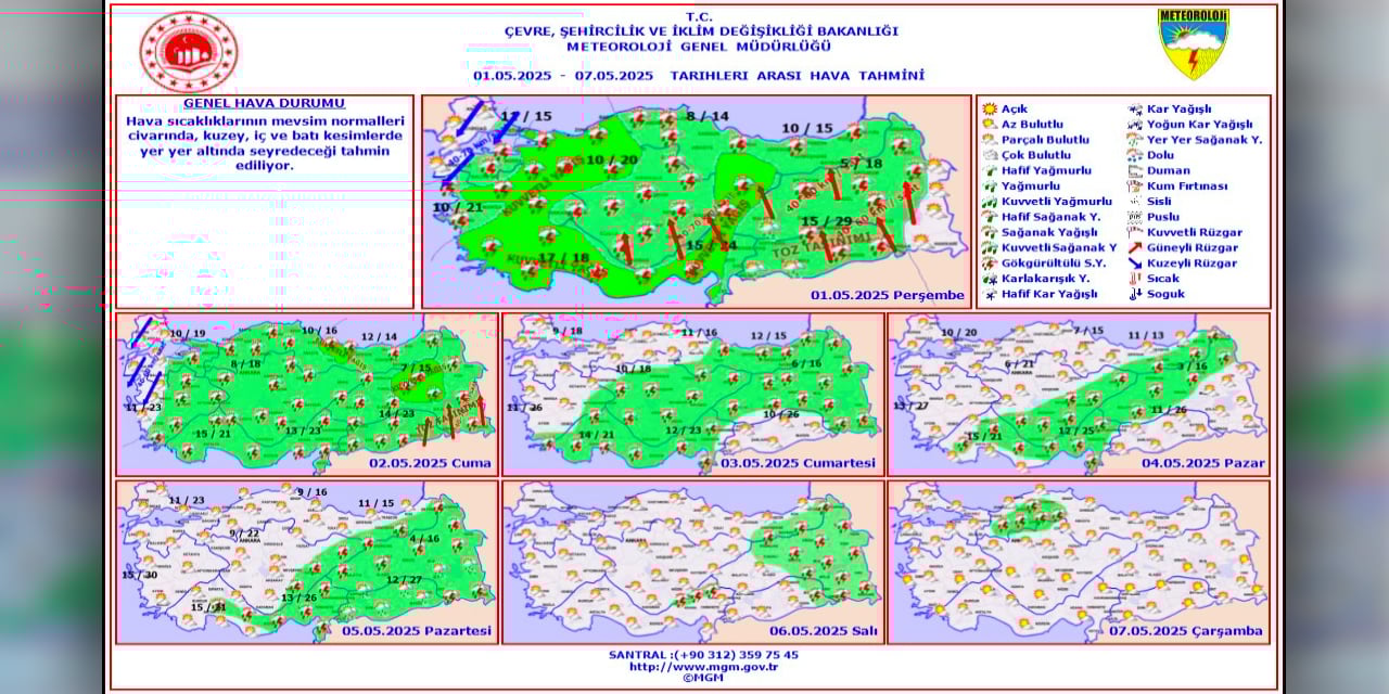 Haftalık tahmin raporunu da paylaşan Meteoroloji, yurt genelinde sıcaklıkların mevsim normallerinde ilerleyeceğini öngörürken kuzeyden ve güneyden gelen kuvvetli rüzgarlara dikkat çekti. Sıcaklıklarla ilgili bölgesel uyarılarda bulunan Meteoroloji “Hava sıcaklıklarının mevsim normalleri civarında, kuzey, iç ve batı kesimlerde yer yer altında seyredeceği tahmin ediliyor.” dedi.