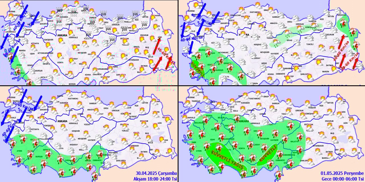 Yağışların Batı Akdeniz ile Muğla ve Doğu Akdeniz’in Toroslar kesiminde yer yer kuvvetli olması beklenirken gece ve sabah saatlerinde İç Anadolu’nun kuzey ve doğusu, Batı, Orta ve Doğu Karadeniz ile Doğu Anadolu’da pus ve yer yer sis hadisesinin görülmesi bekleniyor.
